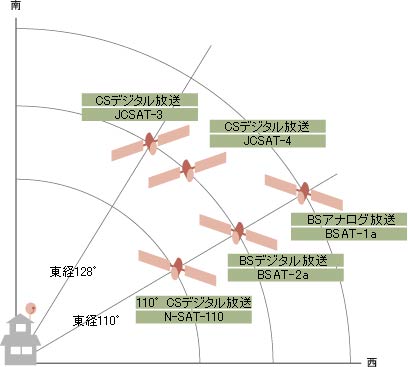 110度CSデジタル放送は、BSデジタル放送衛星と同じ角度に衛星が上っているので、BSデジタル放送とアンテナを共用することができ、チューナーも共通化されています(一部に110度CSデジタル放送を受信できないものもあります)。
