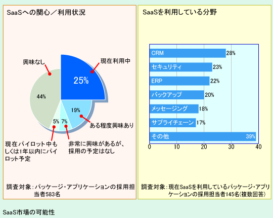SaaSでは、ベンダーが提供するソフトウェアを基本的にはそのままで利用することになります。ASPと比べれば、SaaSのカスタマイズ機能は大きく向上していますが、それでも自社システムなみに自由な機能拡張ができるわけではありません。また、自社内の既存システムとの連携という点も自社システムが有利なことはいうまでもありません。では、どのようなアプリケーションがSaaSに向いているかというと、