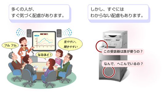 同じことは「音声案内システム」にも言えます。このように、障がい者に向けた配慮は、ともすれば健常者には理解できないことがあります。このためにも、多くの方に価値を認識してもらうため、その説明が求められるのです。