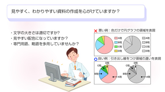 製品やサービスを企画・開発してそれだけで終わりということではありません。ユニバーサルデザインへの配慮や工夫を、周囲の人々に伝えていくことも重要です。