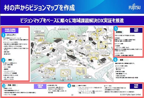 そこでオープンイノベーションの観点から考え、東京のベンチャー企業であるアイラの技術を使い、高齢者でも使える端末を通じたデジタルコミュニティを作りました。その際に村の住人から声を集め、指針として「こういった村を目指しましょう」と作ったのがビジョンマップです。