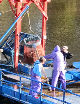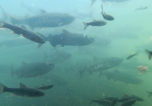 館長から、明治時代よりサケのふ化放流を行っており、毎年サケが千歳川を遡上してくるサケのふるさと、と紹介がありました。しかしサケの漁獲量は不安定だそうです。理由は温暖化など環境影響だけではなく、ふ化放流したサケの繁殖力が弱まっていることもあるそうです。課題に対応しながらこれからもサケのふるさとを守っていきたいとお話で熱い思いを感じました。水族館では、バックヤード見学にて管理設備の見学や日本最大級の水槽の上の散歩も体験しました。こちらでは様々な淡水生物を観ることができますが、館内から千歳川の水中見学ができます。シーズン到来!でサケの遡上をみることができました。なおサケは近くの橋で水揚げされる運命ですが、飛び越える元気なサケもいます。超えていくサケに「ガンバレ」とエール送りました。