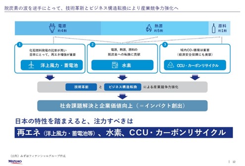 再生可能エネルギー・水素・カーボンリサイクルへの注力がポイント