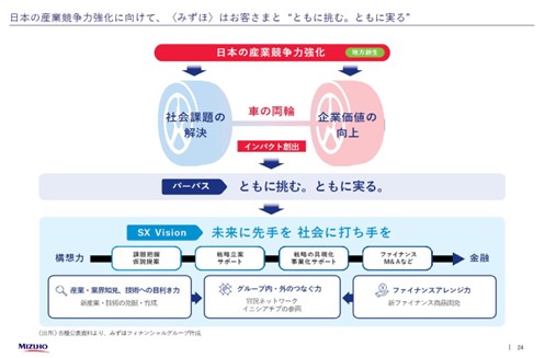 金融は、さまざまな業種とお付き合いがある仕事です。全国に支店を持っているみずほフィナンシャルグループ(以下、みずほ)は、金融の立場からサステナビリティトランスフォーメーション(SX)をどのように見ているのか、多くの企業とどのように取り組んで行きたいと考えているのかについてお話しします。