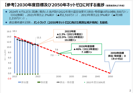 日本における2030年度目標と2050年ネットゼロに対する進捗状況