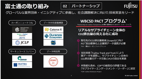 富士通単独では、実現できない社会課題の解決に向けてエコシステムを構築する「パートナーシップ」として、グローバルな業界団体やイニシアティブに参画しています。
