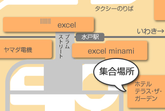| 12:30 | 集 合(水戸駅南口 ホテル テラス・ザ・ガーデン前ご集合) ※東京方面から:上野発11:00 水戸着12:06スーパーひたち (昼食はご用意しておりませんので、お済ませの上ご集合ください) |