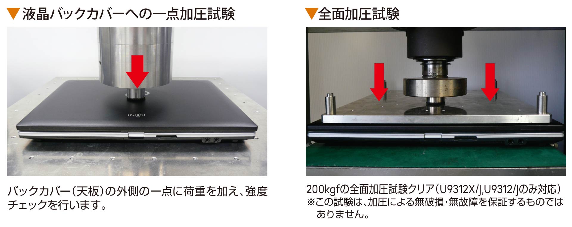 一定の荷重を繰り返し加えることにより、装置実装状態での各種部品への影響を確認します。