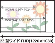 広大な表示領域が得られる高解像度 FHD(1920 × 1080ドット)